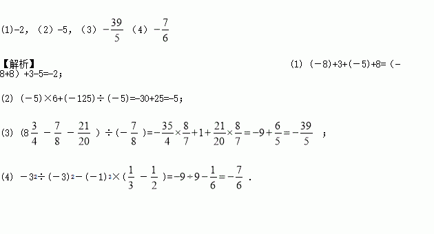 (1) (-8)+3+(-5)+8; (2) (-5)×6+(-125)÷(-5);
