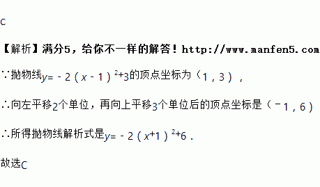 A. y=﹣2(x﹣1)2+6 B. y=﹣2(x﹣1)2﹣6