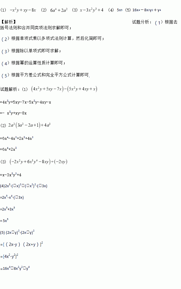 (5) (2x-y)2·(2x+y)2