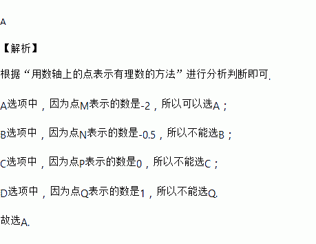 如图所示,数轴上四点M,N,P,Q中,表示负整数的点是( )