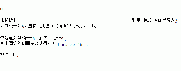 如图,圆锥的底面半径为3,母线长为6,则侧面积为