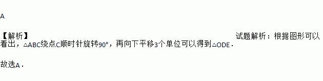 A 【解析】试题解析:根据图形可以看出,△ABC绕点C顺时针旋转90°,再向下平移3个单位可以得到△ODE. 故选A.