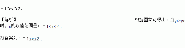 如图是二次函数和一次函数y2=kx+t的图象,当y1≥y2时,x的取值范围是______.