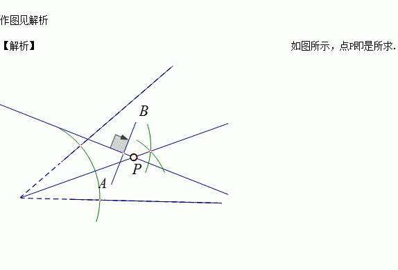 “西气东输”是造福子孙后代的创世纪工程.现有两条高速公路和A、B两个城镇(如图),准备建立一个燃气中心站P,使中心站到两条公路距离相等,并且到两个城镇距离相等,请你画出中心站位置.