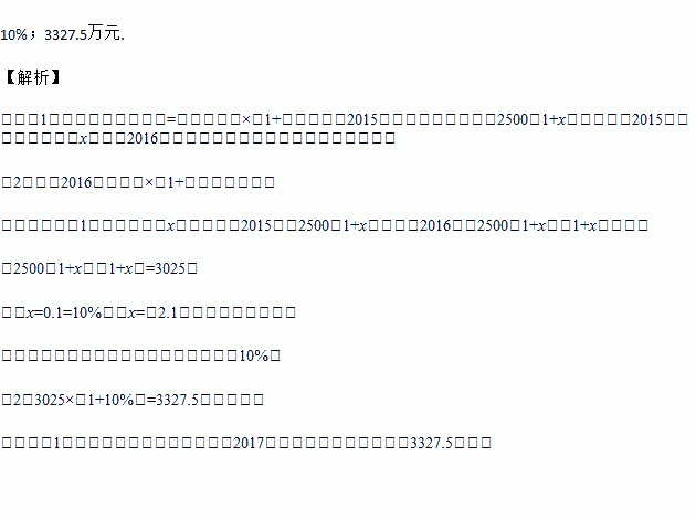 (本小题满分12分)某地区2013年投入教育经费2500万元,2015年投入教育经费3025万元.