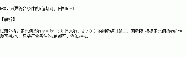 若正比例函数(是常数,)的图象经过第二、四象限,则的值可以是 (写出一个即可).