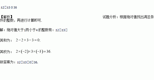 绝对值大于1而小于4 的整数有____________,其和为________,积为________;