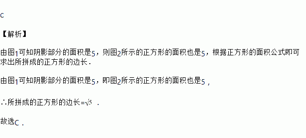 如图1,每个小正方形的边长均为1,按虚线把阴影部分剪下来,用剪下来的阴影部分重新拼成如图2所示的正方形,那么所拼成的正方形的边长为( )
