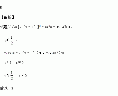 A.m≤ B.m≤且m≠0 C.m<1 D.m<1且m≠0