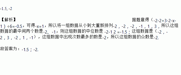 一组数据,-2 ,-2,3,-2,x,-1,它门的平均数为0.5,则它们的中位数是 _______________,众数是___________________.