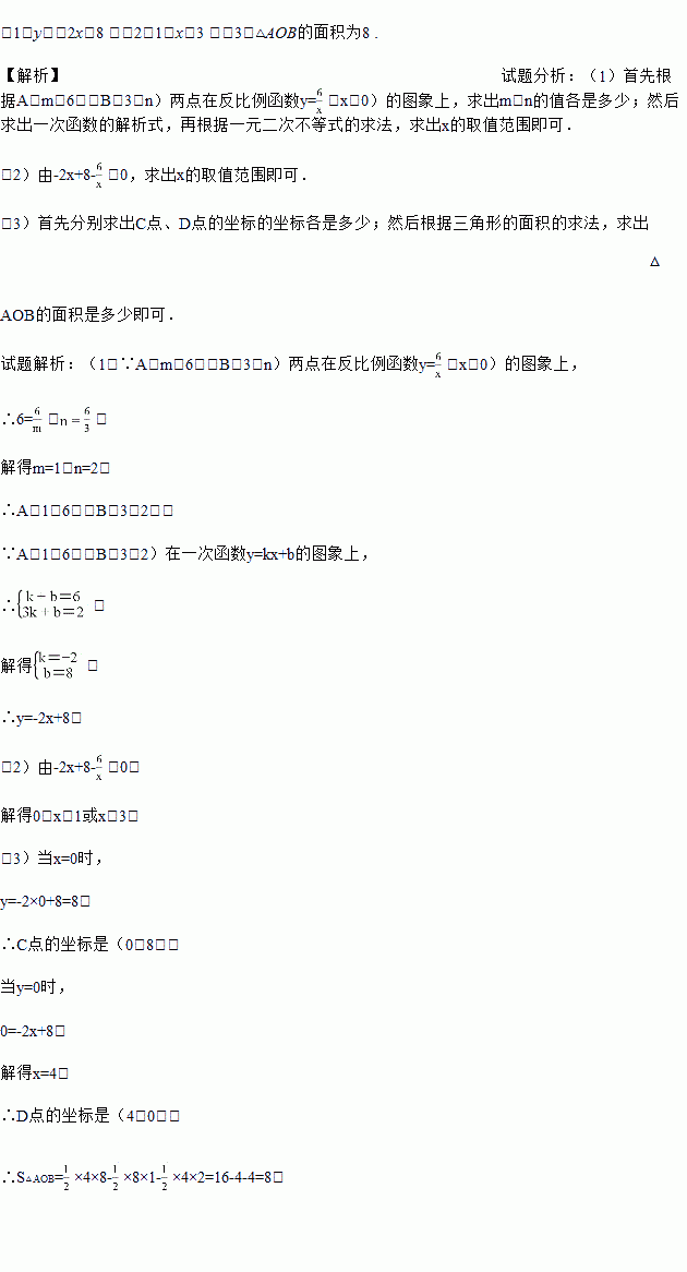 (x>0)的图象交于A(m,6),B(3,n)两点.