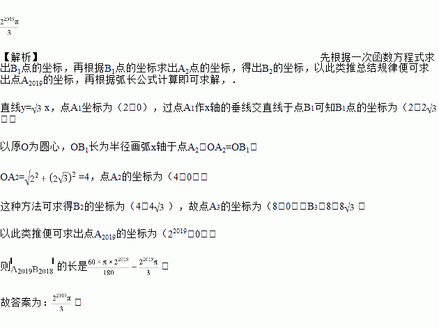 x于点B1,以原点O为圆心,OB1的长为半径画弧交x轴正半轴于点A2;再过点A2作x轴的垂线交直线l于点B2,以原点O为圆心,以OB2的长为半径画弧交x轴正半轴于点A3;….按此作法进行下去,则