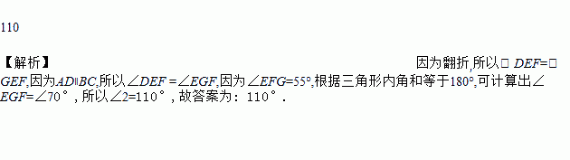 把一张长方形纸片ABCD沿EF折叠后ED与BC的交点为G,D、C分别在M、N的位置上,若∠EFG=55°,则∠2=___________.