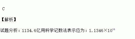 C 【解析】 试题分析:1134.6亿用科学记数法表示应为:1.1346×1011