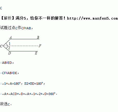 如图,AB∥ED,则∠A+∠C+∠D=( )