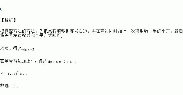 用配方法解一元二次方程x2﹣4x+2=0时,可配方得( )