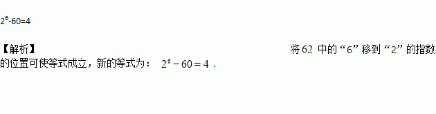 现有一个不成立的等式“62-60=4”,请移动其中一个数字,使得等式成立,则移动后成立的等式是________.