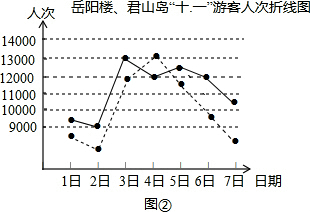 ÔÀÑôÂ¥¡¢¾ýɽµºÈ¥ÄêÆÀΪ¹ú¼Ò5A¼¶¾°Çø£®¡°Ê®•Ò»¡±ÆÚ¼ä£¬ÓοÍÂúÔ±£¬¾Ýͳ¼Æ»æÖÆÁËÁ½·ù²»ÍêÕûµÄÓοÍͳ¼ÆÍ¼£¨Èçͼ¢Ù¡¢Í¼¢Ú£©£¬ÇëÄã¸ù¾ÝͼÖÐÌṩµÄÐÅÏ¢½â´ðÏÂÁÐÎÊÌ⣺