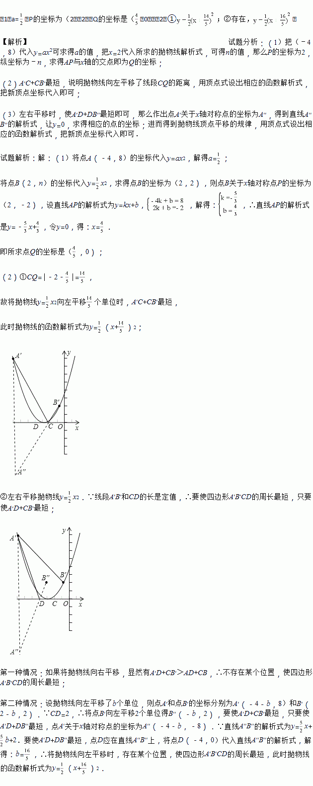 (2)平移抛物线y=ax2,记平移后点A的对应点为A′,点B的对应点为B′,点C(﹣2,0)和点D(﹣4,0)是x轴上的两个定点.