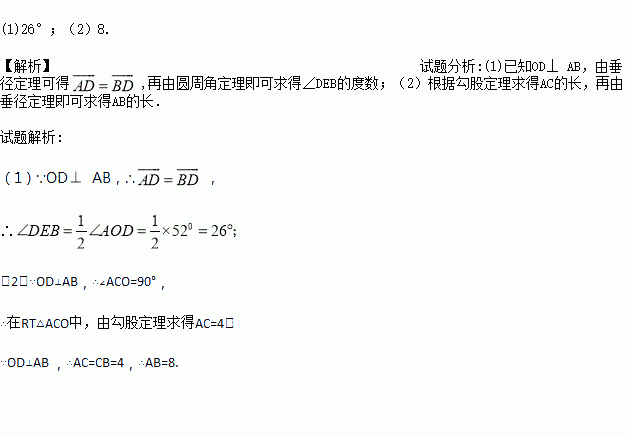如图所示,AB是⊙O的一条弦,OD⊥AB,垂直为C,交⊙O于点D,点E在⊙O上.