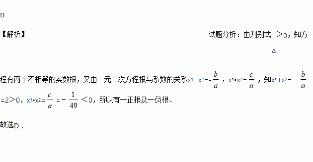 C. 有两负根 D. 有一正根及一负根
