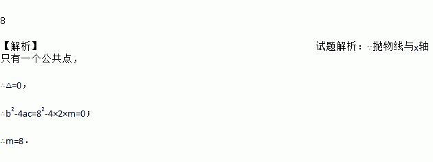 抛物线y=2x2+8x+m与x轴只有一个公共点,则m的值为___________.