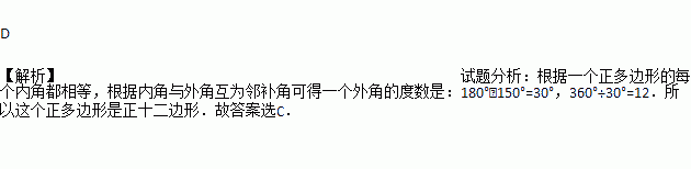 若一个正多边形的一个内角等于150°,则这个正多边形的边数是