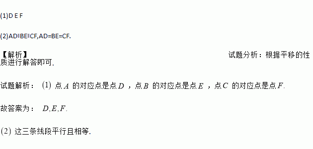 (2)线段AD,BE,CF叫做对应点间的连线,这三条线段之间有什么关系呢?