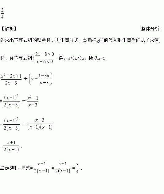 先化简,再求值: ÷( x-, 其中x是不等式组的整数解.