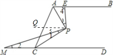如图,AB∥CD,PA平分∠BAC,PC平分∠ACD,过P点作PM、PE交CD于M,交AB于E.