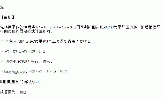 ,若平移的距离是3,则图中阴影部分的面积为______.![]()