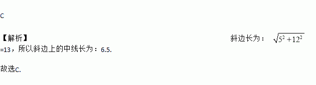 若直角三角形两条直角边长分别为5和12,则斜边上的中线长为( )