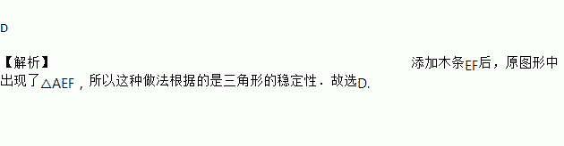 如图,工人师傅安装门时,常用木条EF固定长方形门框ABCD,使其不变形,这种做法的依据是( )