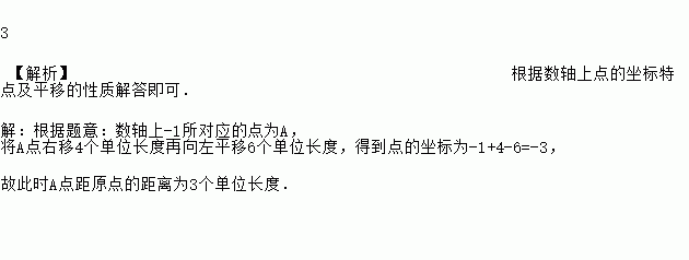 数轴上-1所对应的点为A,将A点右移4个单位再向左平移6个单位,则此时A点距原点的距离为_____.