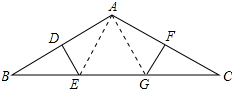 4.分析 连接AE、AG,根据线段垂直平分线上的点到线段两端点的距离相等可得EB=EA,再根据等腰三角形两底角相等求出∠B,根据三角形的一个外角等于与它不相邻的两个内角的和求出∠AEG=60°,同理求出∠AGE=60°,从而判断出,△AEG为等边三角形,再根据等边三角形三边都相等列式求解即可.