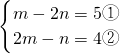 ∵①-②×2得,m-4m=5-8,解得m=1,把m=1代入①得,1-2n=5,解得n=-2,