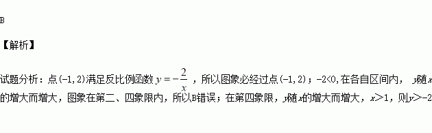 C.图象在第二、四象限内D.若x>1,则y>-2