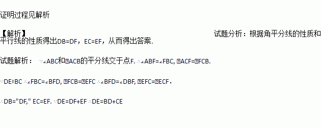 如图:△ABC中,∠ABC和∠ACB的平分线交于F点,过F点作DE∥BC,分别交AB、AC于点D、E.求证:DE=BD+CE
