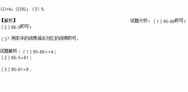 在一次数学测验中,七年级(4)班的平均分为86分,如果把高于平均分的部分记作正数,不足平均分的部分记作负数