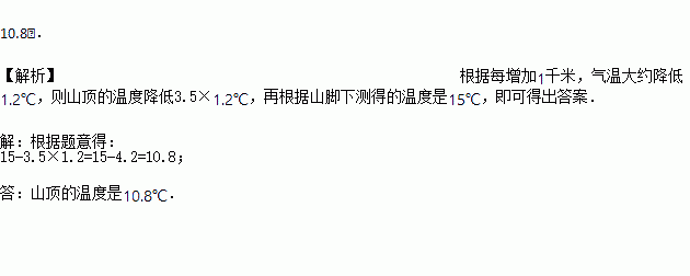 已知某地区高度每增加1千米,气温大约降低1.2℃,该地区有一座高3.5千米的山峰,在山脚下测得的温度是15℃,求山顶的温度是多少?