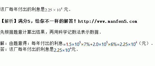某工厂向银行申请了甲种贷款元,乙种贷款元,甲种贷款每年的年利率为,乙种贷款每年的年利率为,问该厂每年付出的利息是多少元?(用科学记数法表示)
