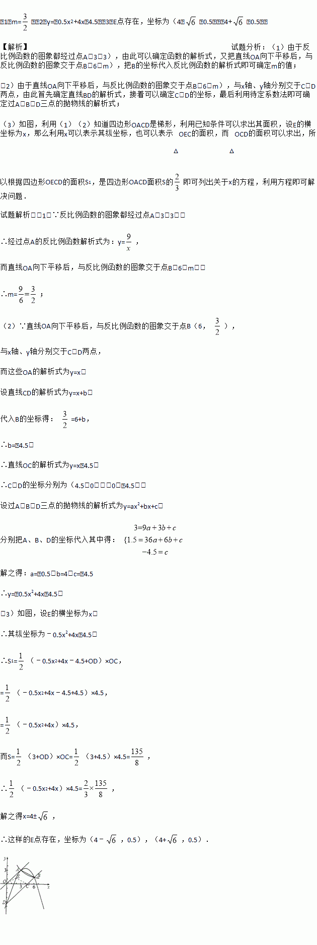 如图,正比例函数和反比例函数的图象都经过点A(3,3),把直线OA向下平移后,与反比例函数的图象交于点B(6,m),与x轴、y轴分别交于C、D两点.