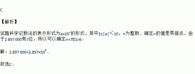 从权威部门获悉,中国海洋面积是2897000平方公里,2897000用科学记数法表示为( )
