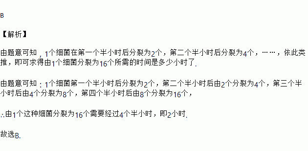 某细菌在培养过程中,每半小时分裂次,每次一分为二,若这种细菌由个分裂到个,那么这个过程要经过( )