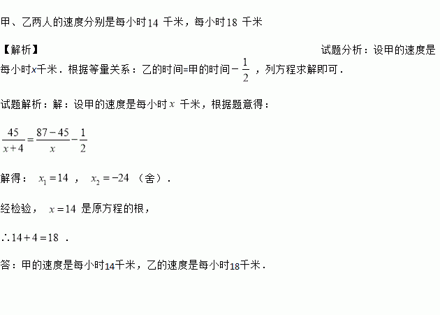 , 两地相距千米,甲由向,先走分钟,然后乙由向走,已知乙速度比甲每小时快千米,两人在距地千米的处相遇,求甲、乙两人的速度分别是多少?