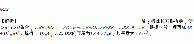 已知,如图长方形ABCD中,AB=3cm,AD=9cm,将此长方形折叠,使点B与点D重合,折痕为EF,则△ABE的面积为_____