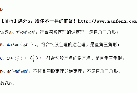 A. a=7,b=24,c=25 B. B a= ,b=4,c=5