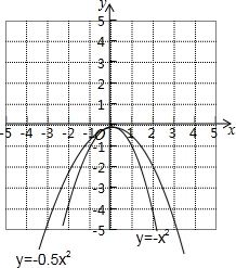 解答 解:在同一直角坐标系中作出作出二次函数y=-x2,y=-0.5x2的图象如下所示:![]()