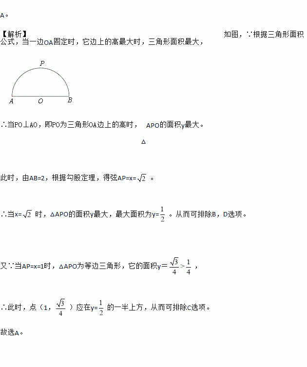 如图,点P是以O为圆心,AB为直径的半圆上的动点,AB=2,设弦AP的长为x,△APO的面积为y,则下列图象中,能表示y与x的函数关系的图象大致是