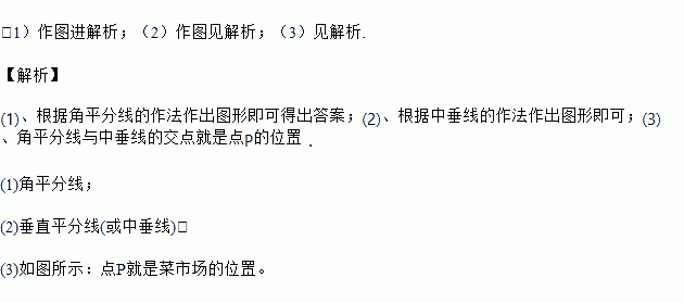 (3)如图,两条公路AB与CB,C、D是两个村庄,现在要建一个菜市场,使它到两个村庄的距离相等,而且还要使它到两条公路的距离也相等,用尺规作图画出菜市场的位置(不写作法,保留作图痕迹).